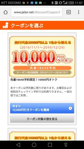 九州ふっこう割のクーポンがまた配布中だ。 対象期間は年内の航空+宿泊(ダイナミックパッケージ)と宿泊。 出発対象期間2016年11月2日(水)~2016年12月28日(水) 今回は宿泊のみの場合、祝前日と土曜日の宿泊は対象外となっていることに注意が必要だ(その前…